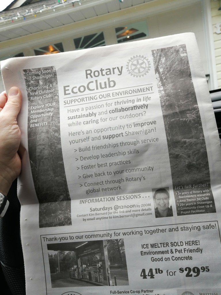 Our Early Beginnings During the Pandemic… Our very first ad in February and March of 2021 was launched to announce a series of Zoom Q&A sessions… to introduce the concept of an environmental-based outdoorsy Rotary EcoClub!