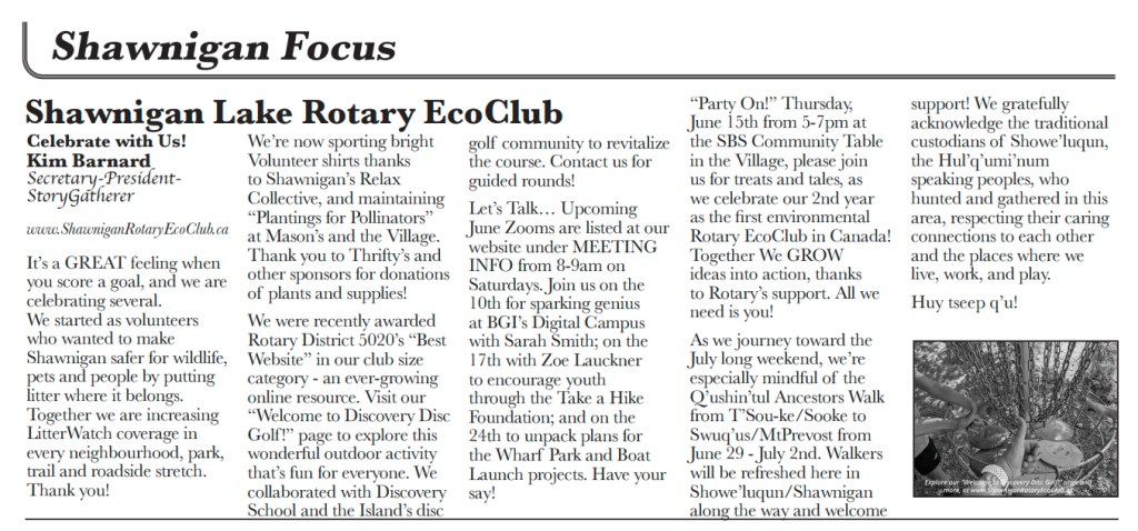 Excerpts from the May and June 2023 Shawnigan Focus digital edition: