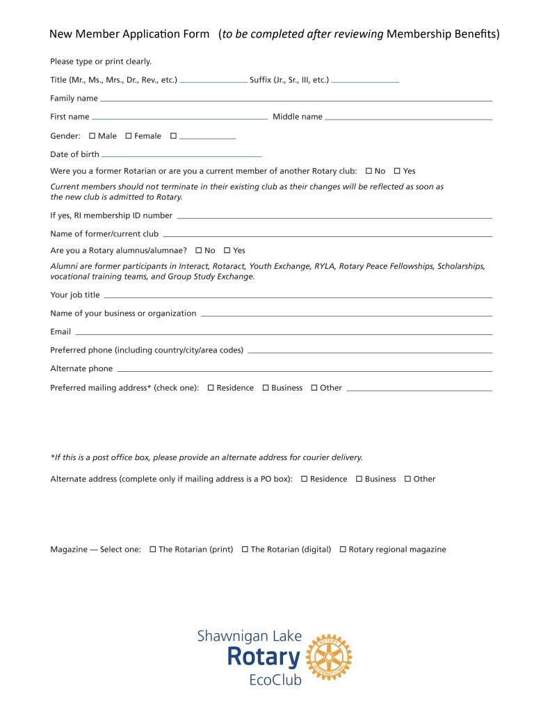 You can become a Member of our club by completing the Shawnigan Lake Rotary EcoClub Member Application Form. By submitting the completed form, you are stating your intention to become a member at the regular rate of $5/week, invoiced at $65 four times a year. This fee includes your annual obligation to our club and district, Rotary International and Rotary monthly digital magazine. We’ll have the opportunity to collaborate from time to time on larger projects and activities with our local community groups and/or the other Rotary clubs in the Cowichan Valley, at additional cost or with fundraising needed. As a valued Member, thank you for sharing your talents and time to actively participate in the life of the club, in service together with us!